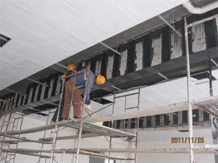 工行樂山分行沙灣支行辦公樓底層框架梁、柱碳纖維加固工程